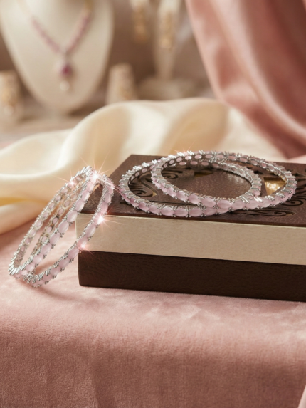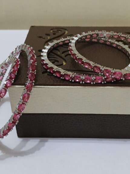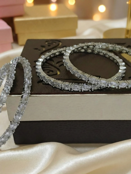 Oval-Cut American Diamond Bangle Set – Rhodium Plated