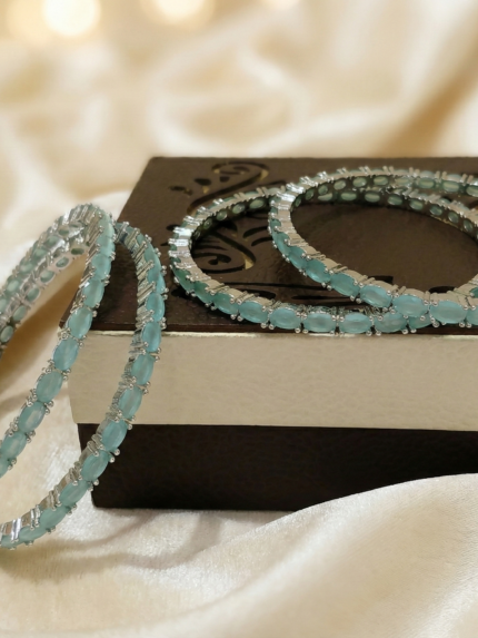 : Aqua Blue Stone Silver Bangles | Oval AD Stone Party Wear Jewelry