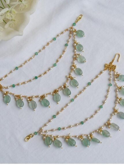 Handcrafted Mint Green Aventurine & Pearl Multi-Strand Ear Saharas (Ear Chains)
