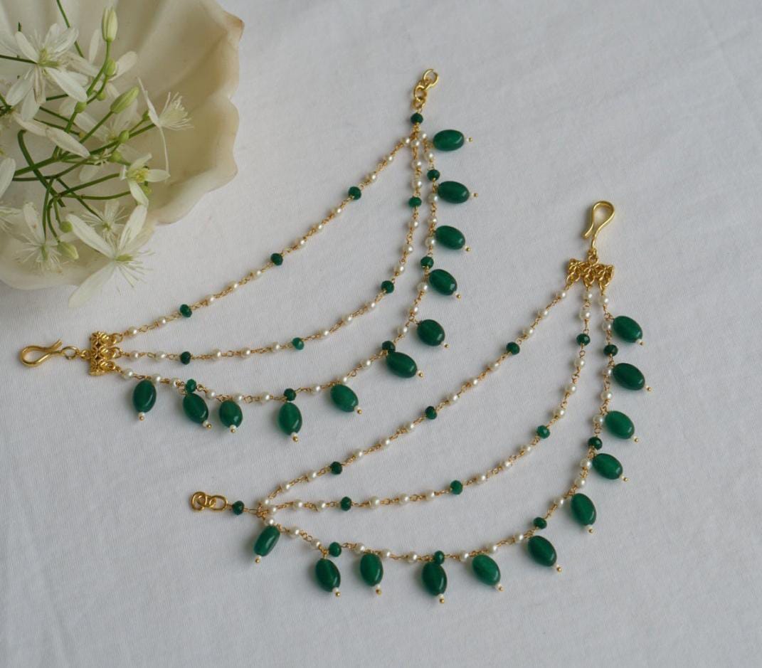 Handcrafted 3-Layer Emerald Green and Pearl Ear Saharas