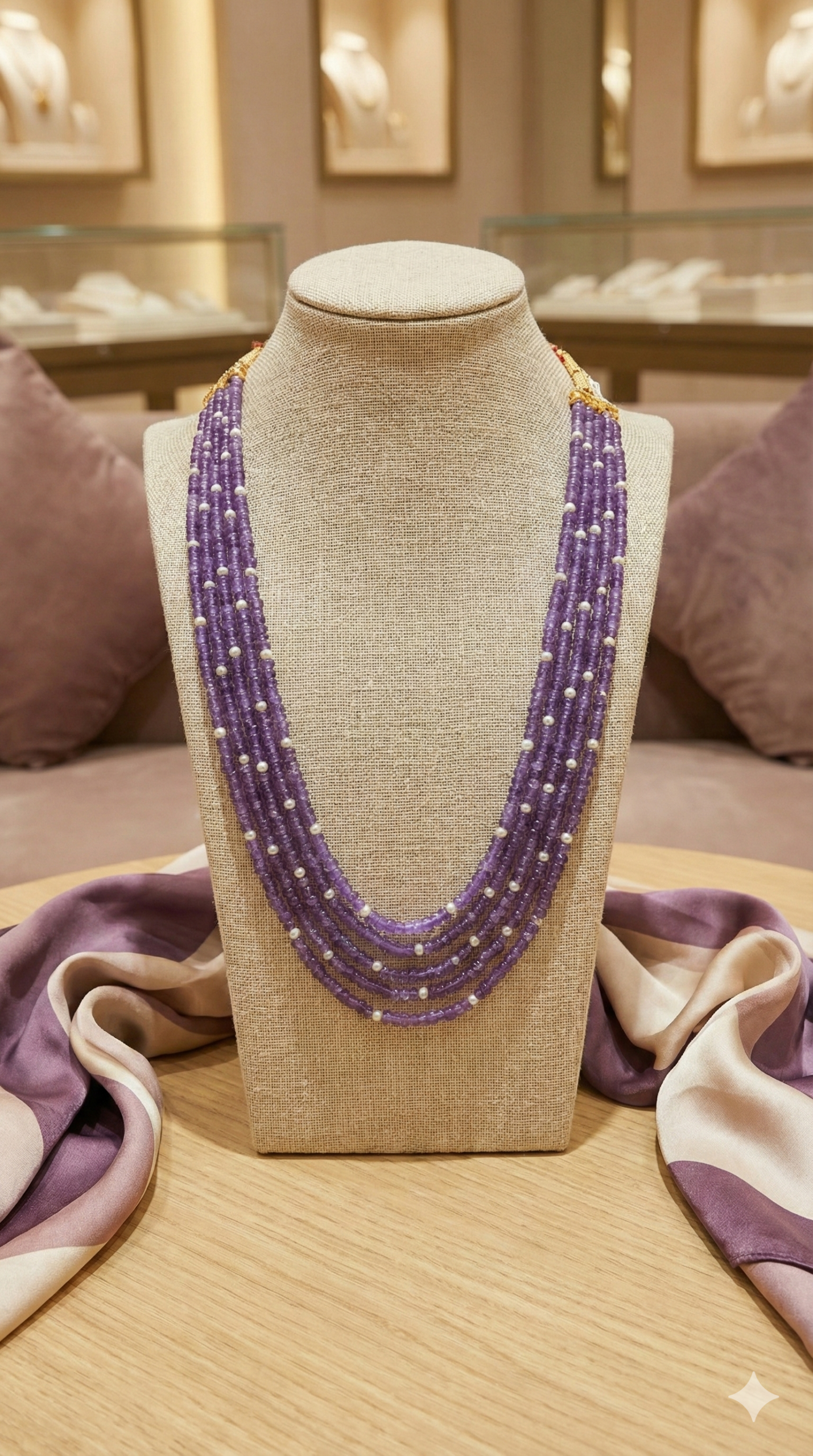Multi-Strand Purple Gemstone & Seed Pearl Layered Mala